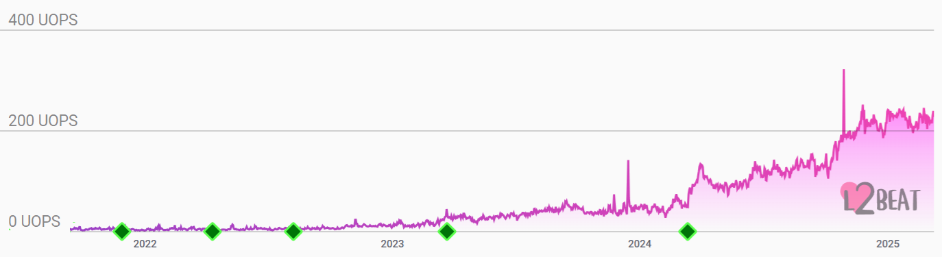 Ежедневные средние операции Ethereum второго уровня в секунду. Источник: L2beat