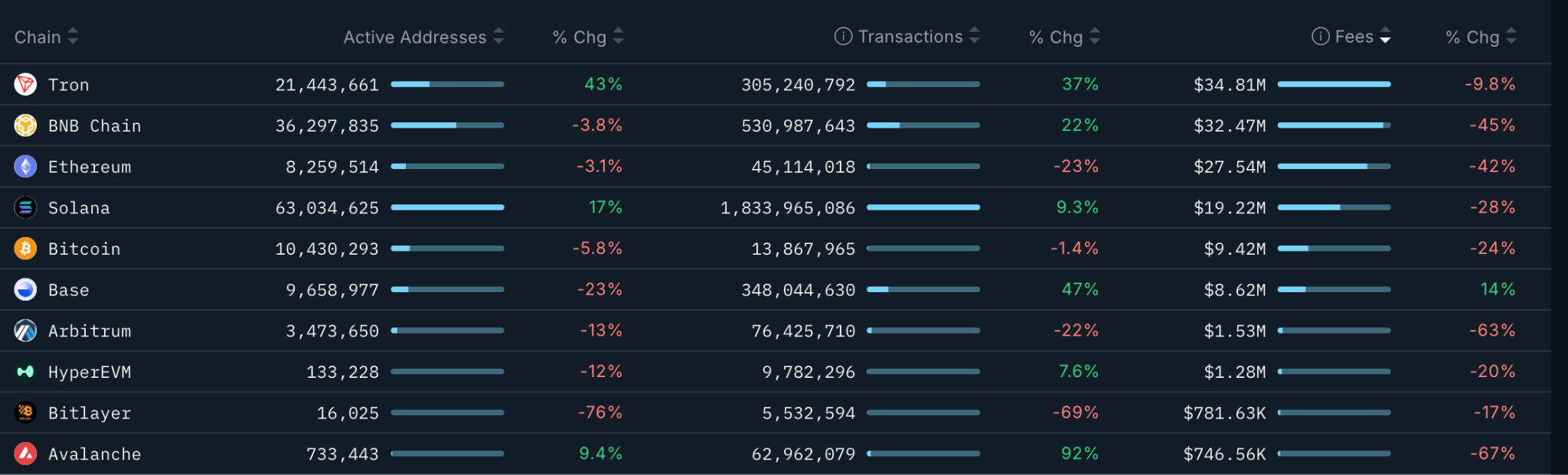 Сборы Ethereum за последние 30 дней упали до $27.54 миллиона в пятницу, что составляет снижение на 42%. Аналогичным образом, сборы Solana уменьшились всего на 9.8%, тогда как доходы BNB Chain сократились на 45%, что укрепляет медвежьи настроения на рынке.