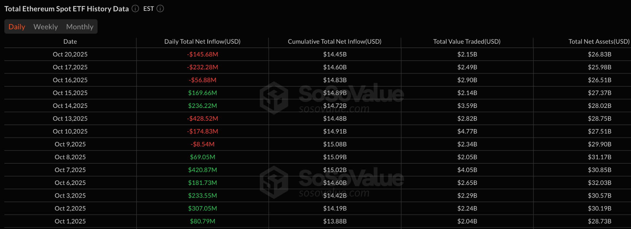 Только в понедельник из эфириума ETF было выведено $145.7 миллиона, в результате чего общий чистый отток за последние восемь дней составил $640.5 миллиона.