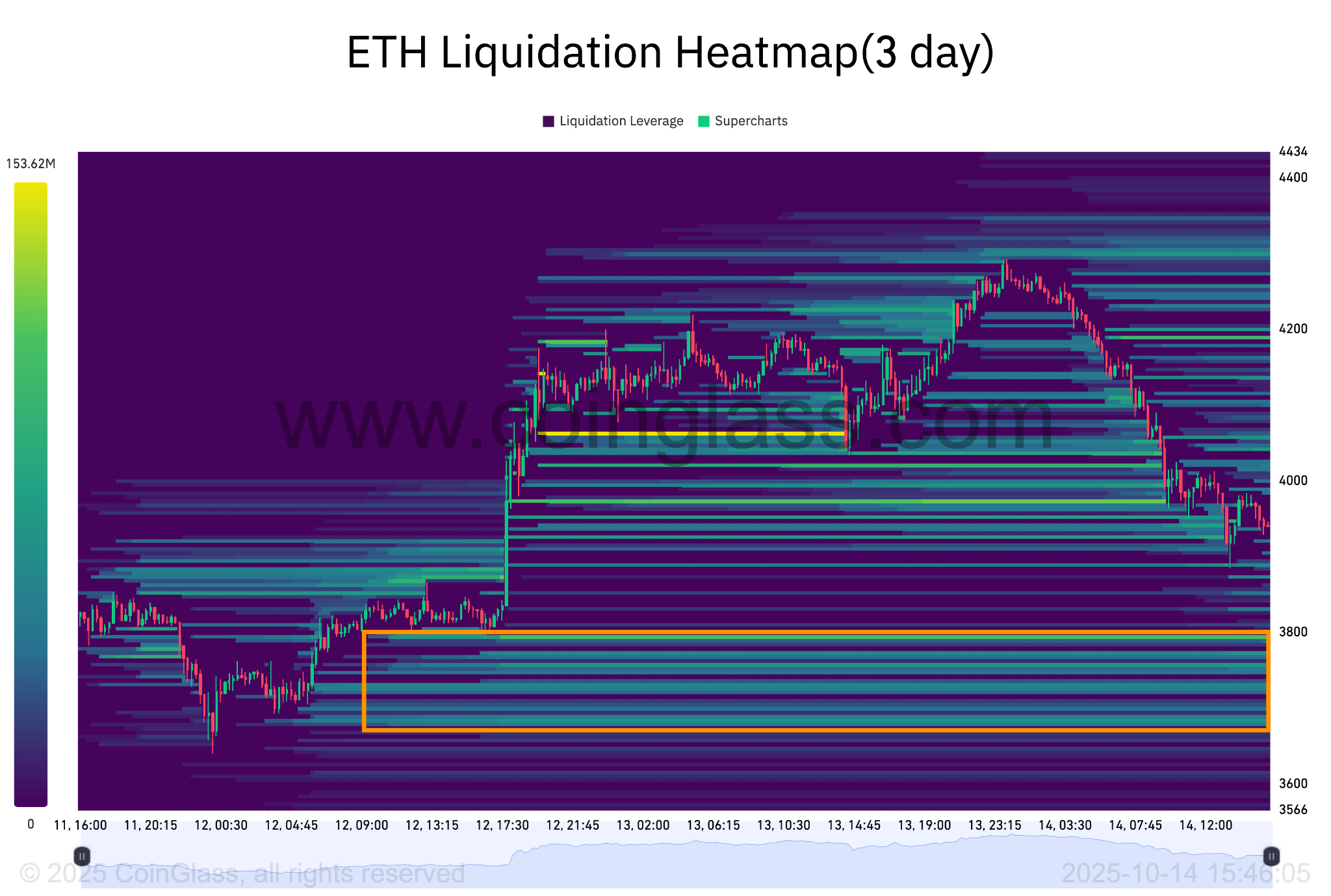 Карта ликвидаций CoinGlass показала несколько зон интереса покупателей ниже текущей цены, с заявками на покупку на сумму более $743 миллионов между $3,670 и $3,800. Это говорит о том, что текущая коррекция может остановиться на этом уровне.