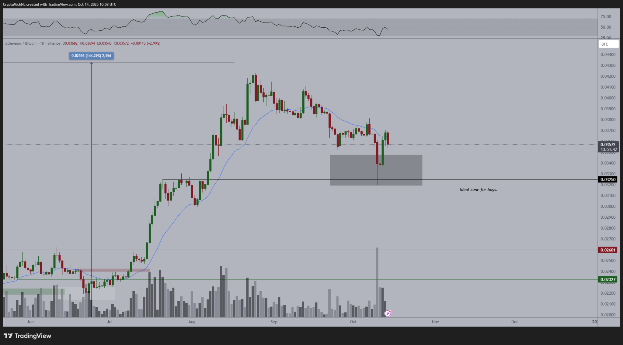 Другой аналитик, Daan Crypto Trades, сказал, что уровень 0.032 "хорошо удержался", но паре ETH/BTC необходимо преодолеть отметку 0.041 для продолжения восходящего тренда.