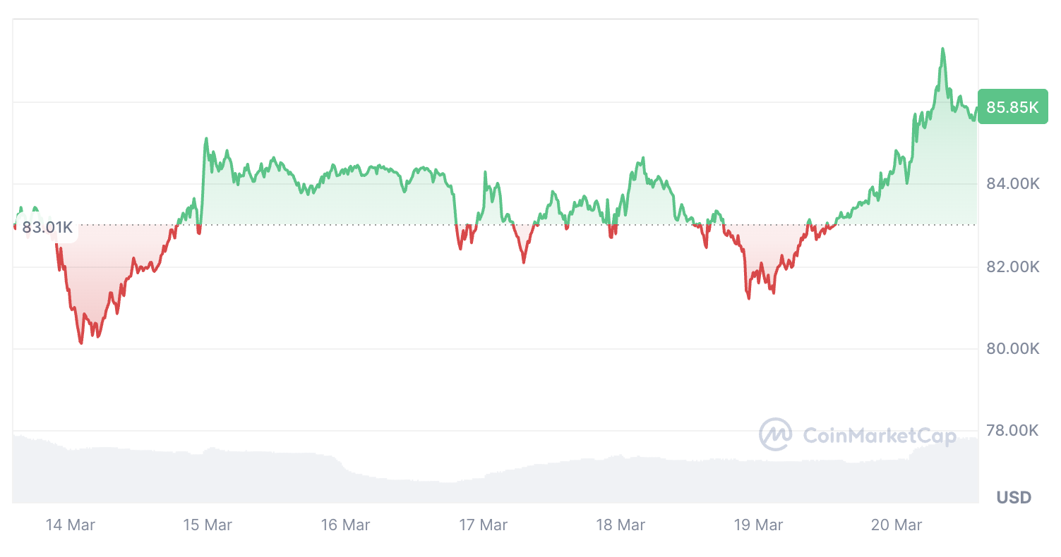 10 марта биткоин (BTC) впервые с ноября приблизился к уровню $77,000, согласно данным CoinMarketCap.