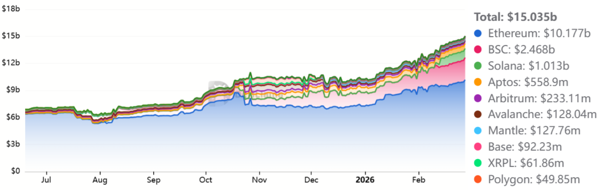 Сосредоточенность только на объемах не учитывает, что Ethereum сохраняет около 57% доли в общем объеме заблокированной стоимости (TVL) — порядка $52,4 млрд. Если учитывать решения второго уровня, такие как Base, Arbitrum, Polygon и Optimism, доминирование экосистемы Ethereum увеличивается до 65%. Для сравнения, TVL Solana составляет около $6,4 млрд, а BNB Chain — около $5,5 млрд, размещенных в смарт-контрактах.