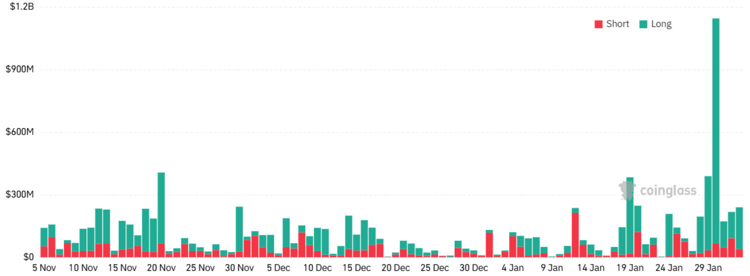 Инвесторов в ETH также насторожило то, что другие крупные криптовалюты пережили коррекцию мягче: Bitcoin (BTC) снизился на 17%, BNB — на 14%, Tron (TRX) — на 4% за последний месяц. Недельное падение ETH до $2 110 привело к ликвидации более чем $2 млрд бычьих фьючерсных позиций с плечом, усилив опасения дальнейшего снижения на фоне ухудшения настроений.