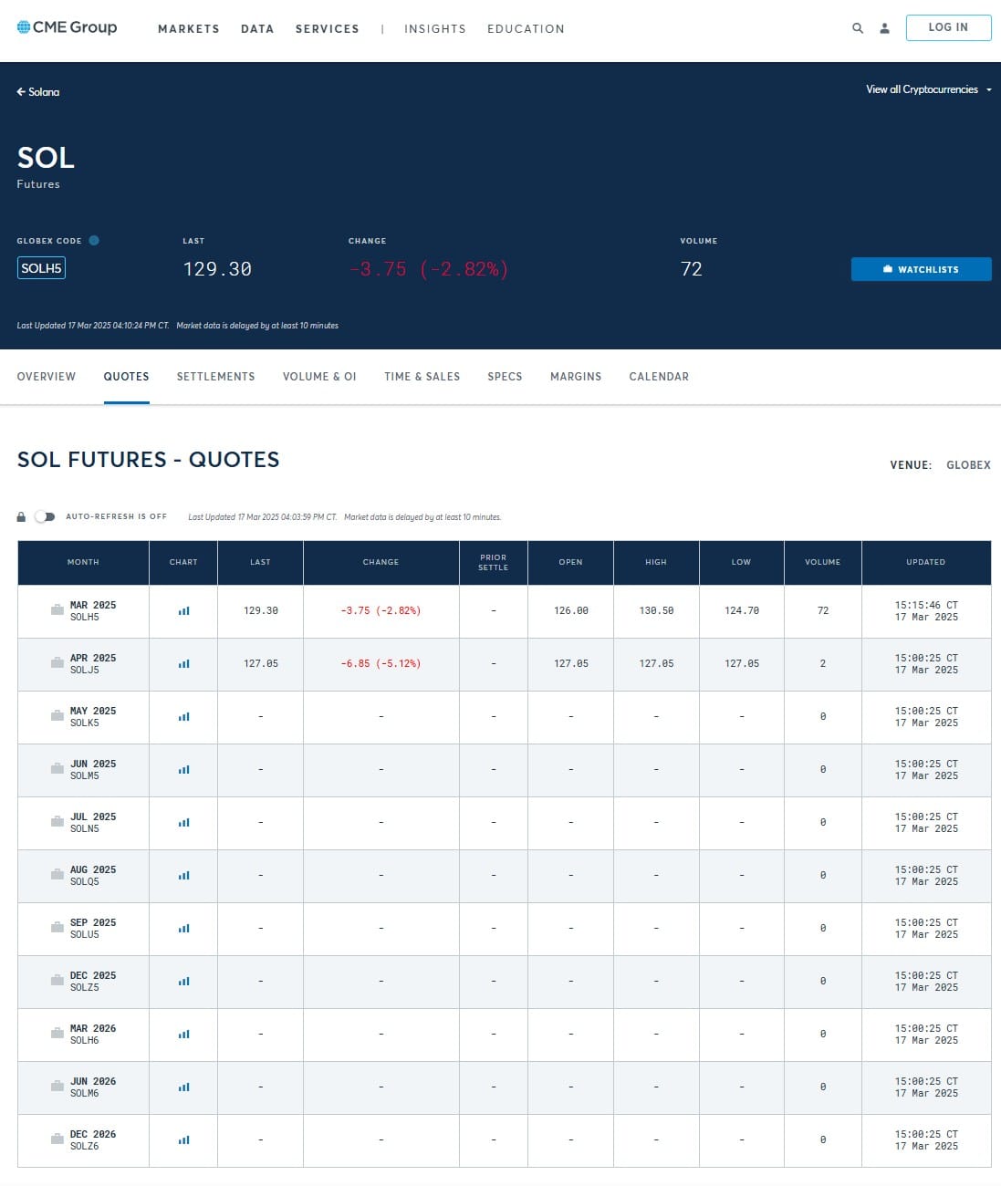 CME разместила фьючерсы на SOL 17 марта. Источник: CME