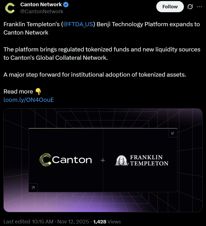 Компания Franklin Templeton расширила свою платформу для токенизации и инвесторов Benji, интегрировавшись с Canton Network, сделав еще один шаг в развитии институциональной блокчейн-инфраструктуры для токенизированных инвестиционных продуктов.