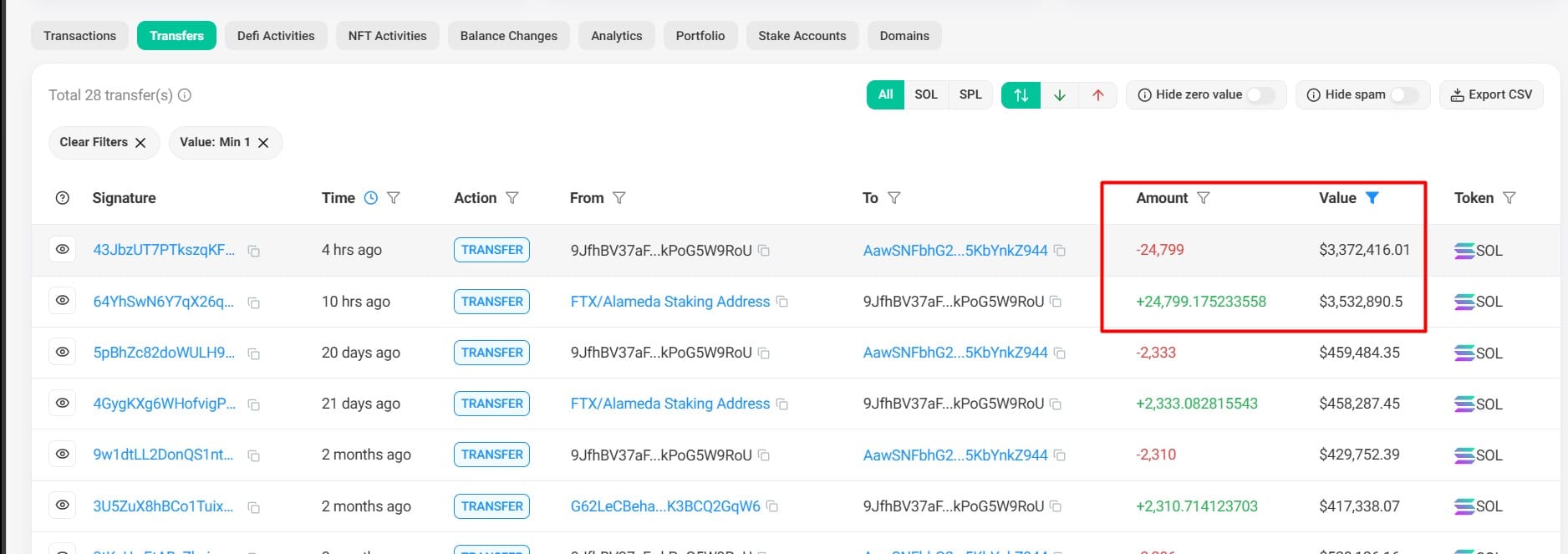 Кошельки FTX и Alameda отправили $3,3 млн на Binance. Источник: Solscan