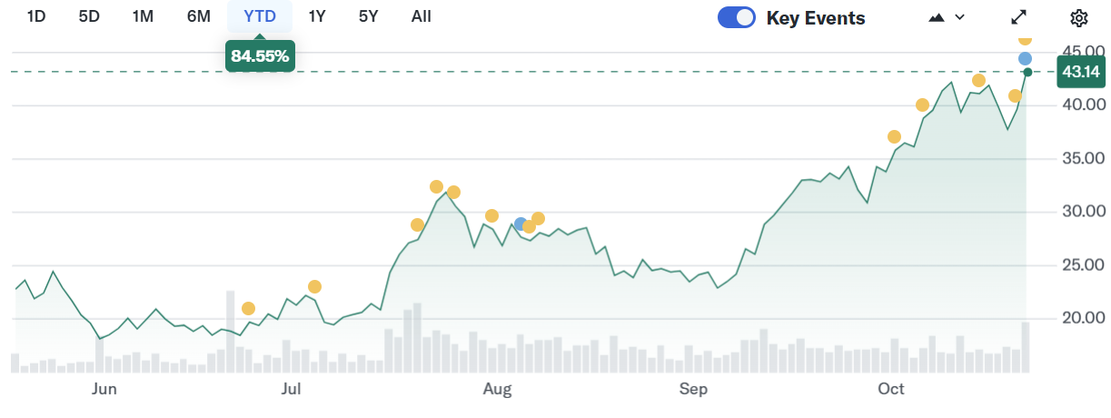 Акции Galaxy Digital выросли на фоне публикации новостей о доходах, поднявшись почти на 16% в какой-то момент, прежде чем стабилизироваться в полдень. На момент закрытия торгов акции стоили более $43, поднявшись на 9% за день.