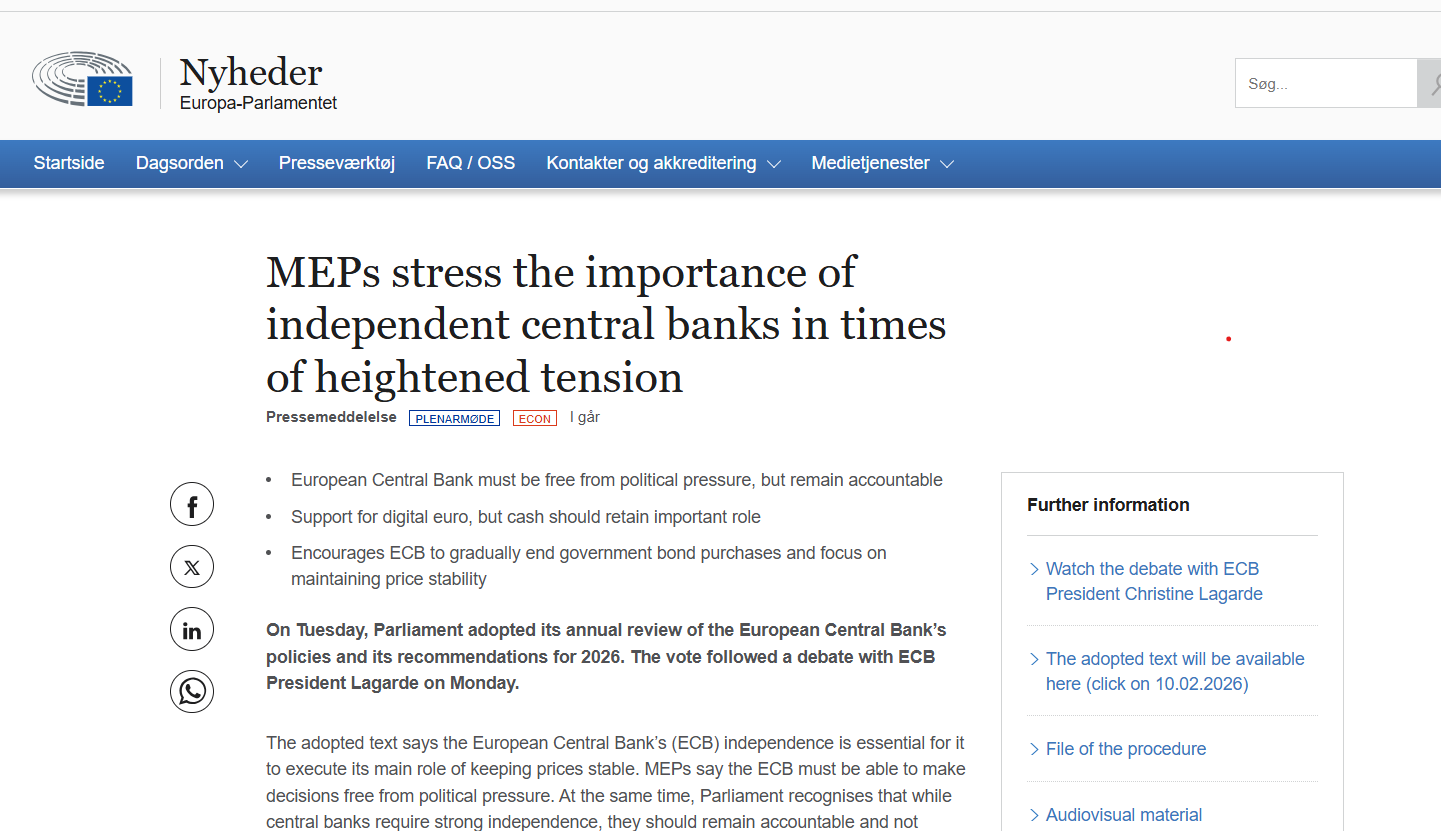 Депутаты приняли ежегодный отчет ЕЦБ 443 голосами «за» при 71 «против» и 117 воздержавшихся, одобрив поправки, где цифровой евро назван «необходимым» для усиления денежного суверенитета ЕС, снижения фрагментации розничных платежей и укрепления целостности единого рынка.