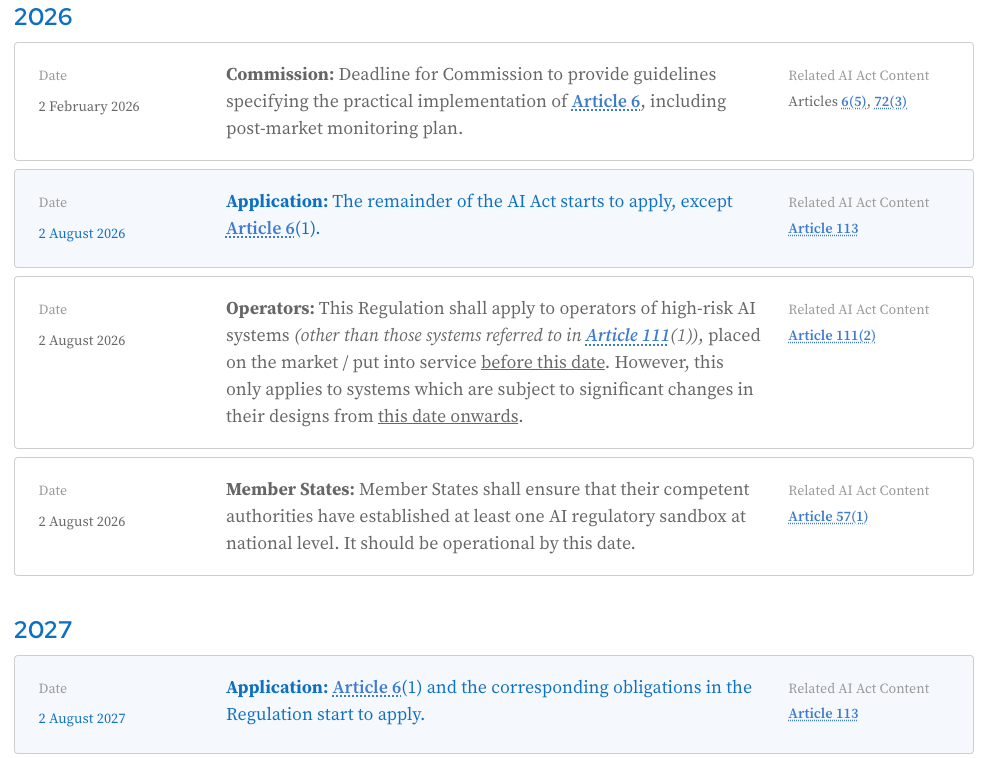 По данным Financial Times, основные положения для высокорисковых систем ИИ, которые могут представлять «серьезные риски» для здоровья, безопасности или основных прав граждан, должны вступить в силу в августе 2026 года.