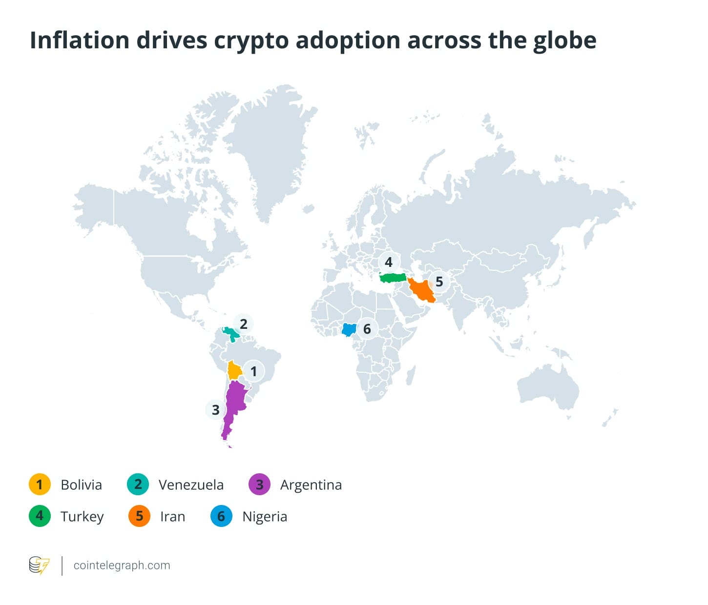Глобальная инфляция может замедляться, но в тех регионах, где местная денежная система все еще ненадежна, криптовалюты остаются жизнеспособной и привлекательной альтернативой.