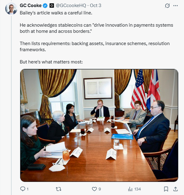 CG Кук, соучредитель платформы управления стабильными монетами Brava Finance, сказал, что управляющий BoE Эндрю Бэйли становится более открытым к идее сосуществования стабильных монет вместе с активами, контролируемыми центральным банком, такими как цифровые валюты центральных банков.