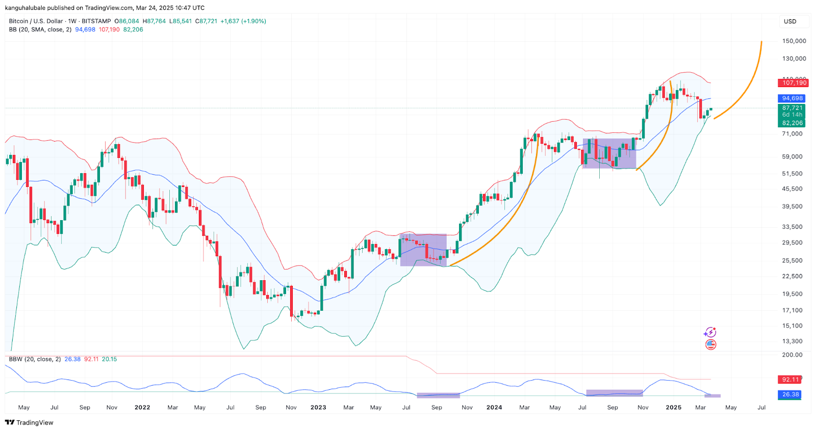 Консолидация цены Биткоина завершается — Полосы Боллинджера