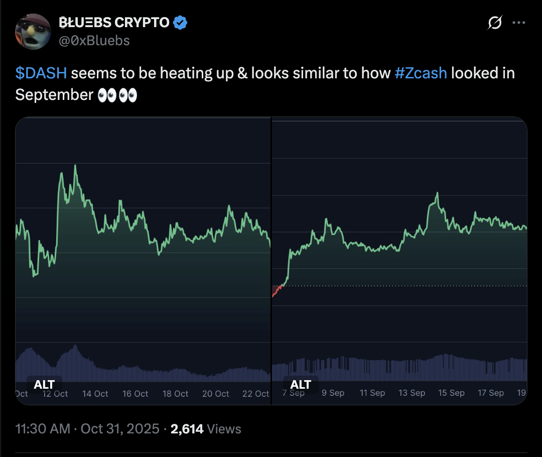 Рост этой анонимной криптовалюты был схож с недавним взлетом Zcash (ZEC), что свидетельствует о возможном прорыве Dash, который повторит взрывной рост ZEC до восьмилетних максимумов.