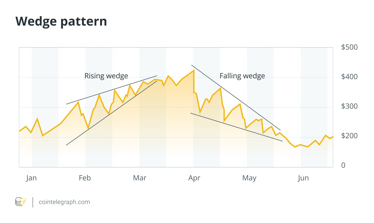 Паттерны клинья образуются, когда движения цен создают сходящиеся линии тренда, которые либо поднимаются вверх (восходящий клин, обычно медвежий), либо спускаются вниз (нисходящий клин, обычно бычий).