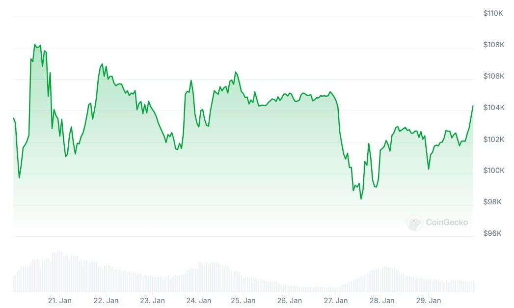 Колумбия быстро изменила курс — согласившись принять депортированных — после давления в связи с зависимостью от американской торговли. Биткоин вскоре снова поднялся выше $100,000. Однако настроение на рынке было дополнительно поколебано неожиданным ростом китайской компании DeepSeek, чья бюджетная модель вызвала опасения в секторе технологий и способствовала развитию рискового настроения на рынках.