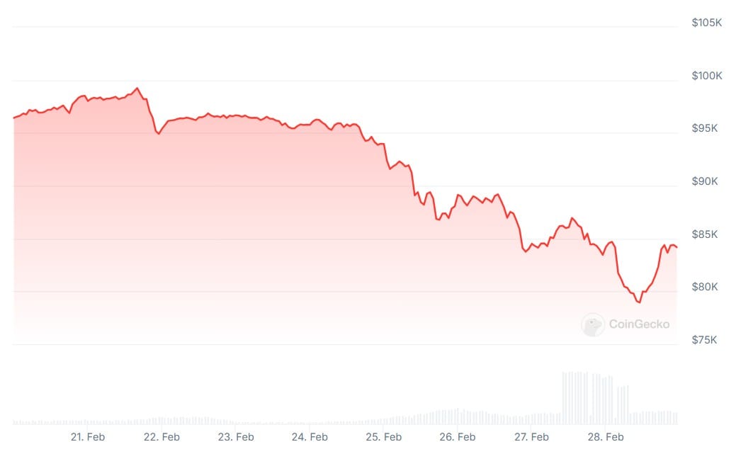25 февраля Трамп добавил к снижению давления, приказав провести обзор потенциальных тарифов на импорт меди, ссылаясь на национальную безопасность. Биткоин упал ниже $80,000 впервые с ноября.
