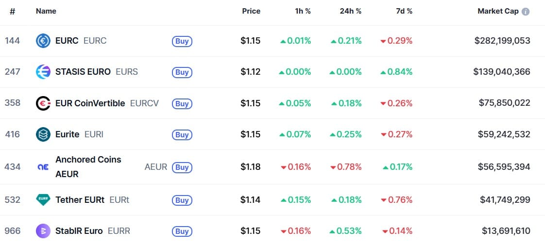 Во Франции цифровое подразделение Société Générale, SG-Forge, выпустило EURCV и USDCV, хранителем которых выступает BNY Mellon. Немецкая компания AllUnity, совместное предприятие DWS, Deutsche Bank, Galaxy и Flow Traders, выпустила EURAU и планирует расширять ее присутствие на различных блокчейнах.