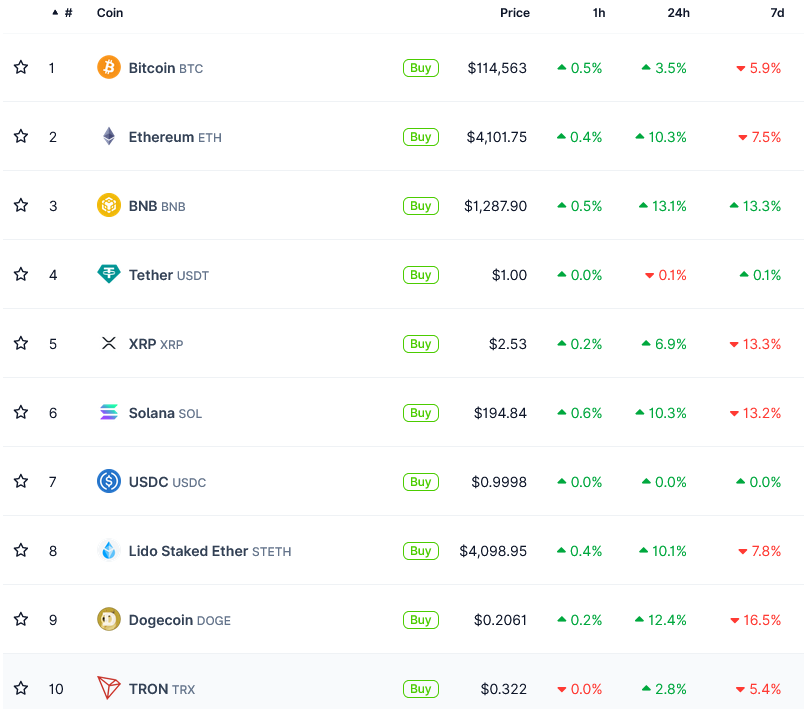 Эти три ведущие монеты увеличились на 10,5%, 13,6% и 12,5% за последний день, в то время как Solana (SOL), Cardano (ADA) и Chainlink (LINK) также выросли более чем на 10%, как показывают данные CoinGecko.