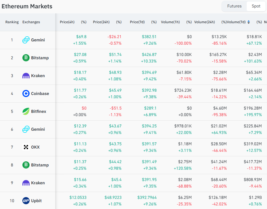 По данным CoinGlass, по объемам торговли фьючерсами на Эфир, Upbit заняла 10-е место среди CEX, с объемом торговли в 1,29 миллиарда долларов за прошедшую неделю.