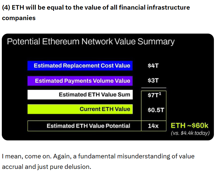 В сентябре основатель Mechanism Capital Эндрю Кан раскритиковал теорию основателя BitMine Тома Ли о стоимости Эфира, утверждая, что она переоценивает прирост стоимости Эфира за счет стейблкоинов и токенизации реальных активов (RWA).