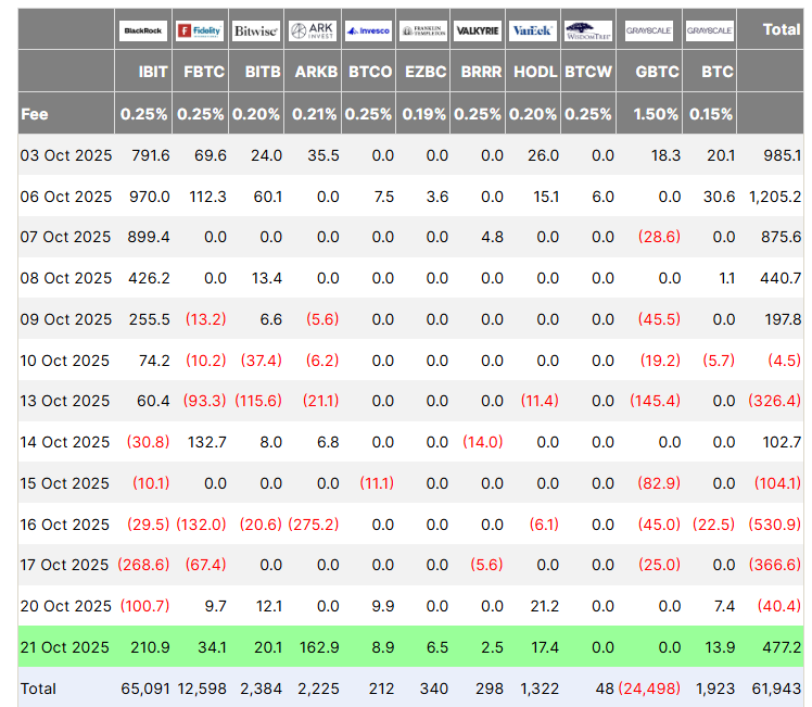 На этой неделе биржевые фонды Биткоина зафиксировали резкий рост притока после нескольких дней политически обусловленного оттока. Во вторник фонды увидели чистый положительный приток в размере $477 миллионов, согласно данным Farside Investors, таким образом прервав четырёхдневную полосу потерь.