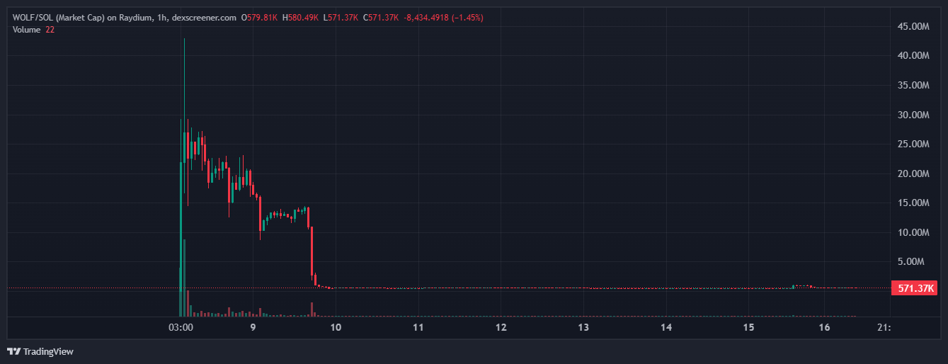 WOLF/SOL, рыночная капитализация, 1-часовой график. Источник: Dexscreener