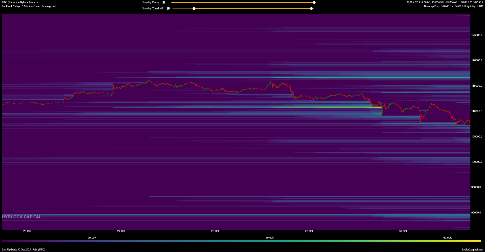 На данный момент путь наименьшего сопротивления для Биткоина остается нисходящим, при этом данные карты ликвидации Hyblock указывают на наиболее близкую ликвидность на уровне $103,800.