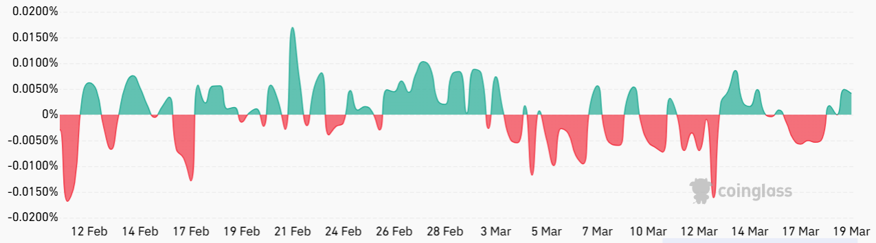 Периоды высокого спроса на медвежьи ставки обычно подталкивают ставку финансирования восьмичасовых перпатчальных фьючерсов к -0.02%, что равноценно 1.8% в месяц. Когда ставка становится отрицательной, продавцы коротких позиций платят за поддержание своих позиций. Обратное происходит, когда трейдеры настроены оптимистично относительно цены SOL, что вызывает рост ставки финансирования выше 0.02%.