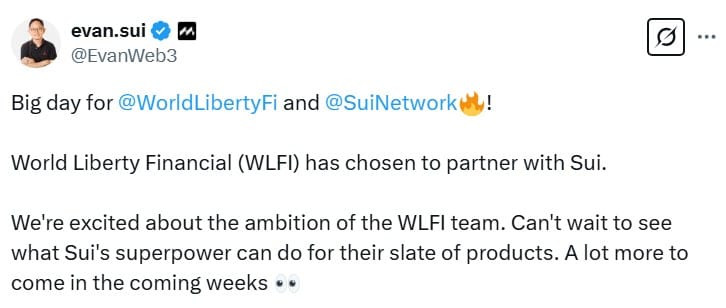 Генеральный директор Mysten Labs продвигает «суперсилу» Sui после партнерства с WLFI. Источник: Evan Cheng