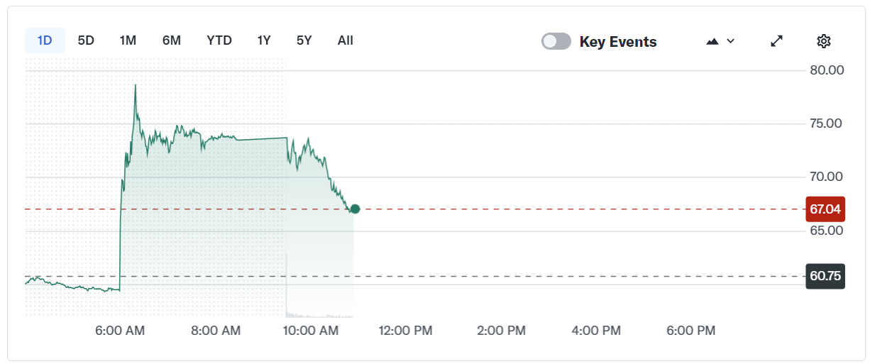 Акции IREN резко выросли после открытия торгов в понедельник, что отражает энтузиазм инвесторов после объявления о сотрудничестве с Microsoft.