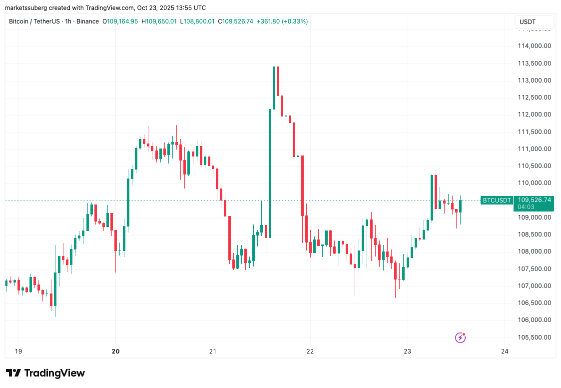Данные от dc.finance Markets Pro и TradingView показывали, что динамика курса BTC достигала $110,000, но не удержалась на этом уровне.