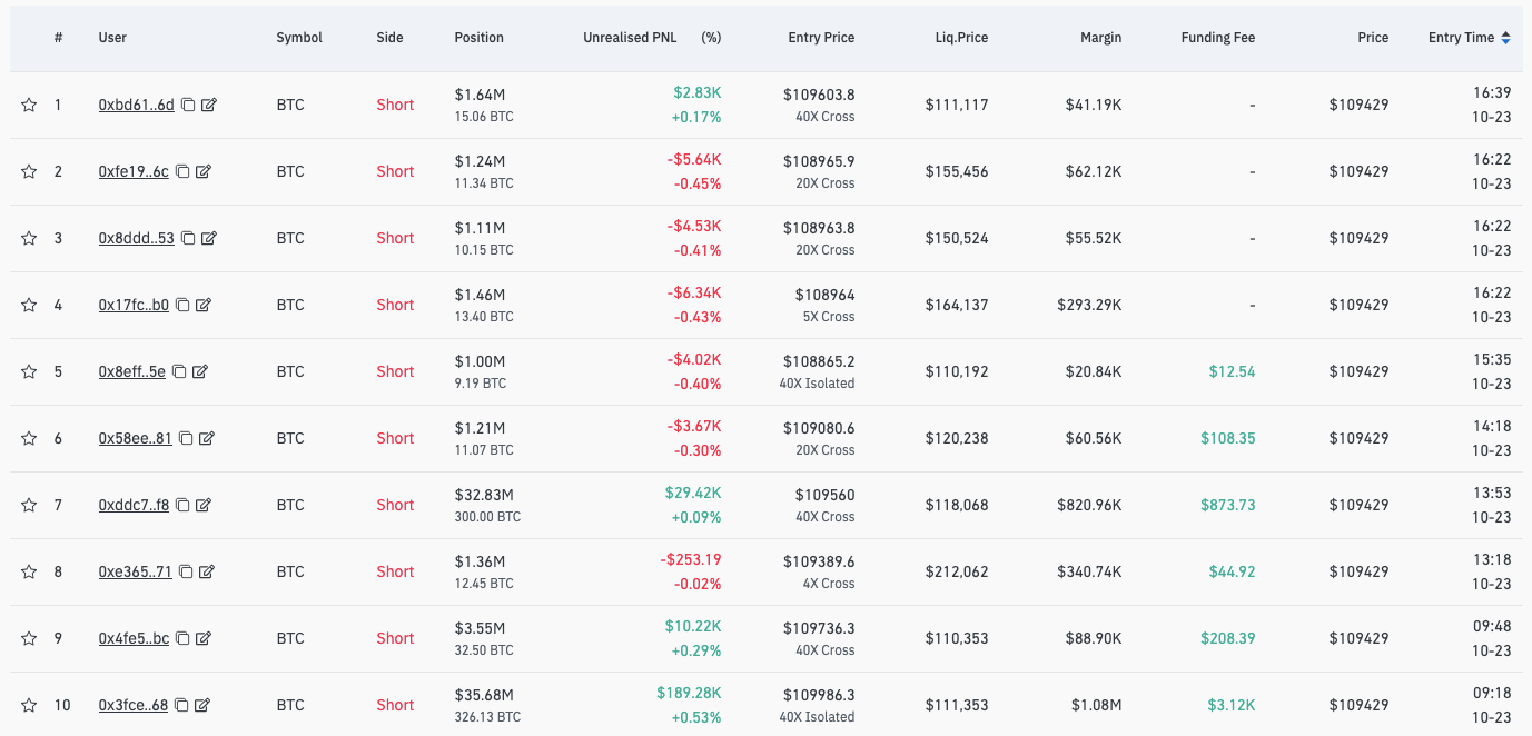 Открывает короткую позицию по $BTC с 40-кратным плечом!!!