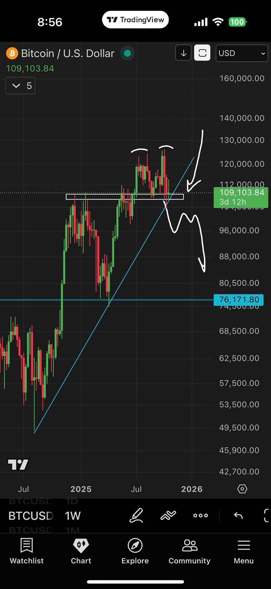«Пока мы удержали уровень, но я хотел показать, что это не просто горизонтальная поддержка, это диагональная поддержка для восходящего тренда продолжительностью около полутора лет», он сообщил подписчикам на X о недельном графике.