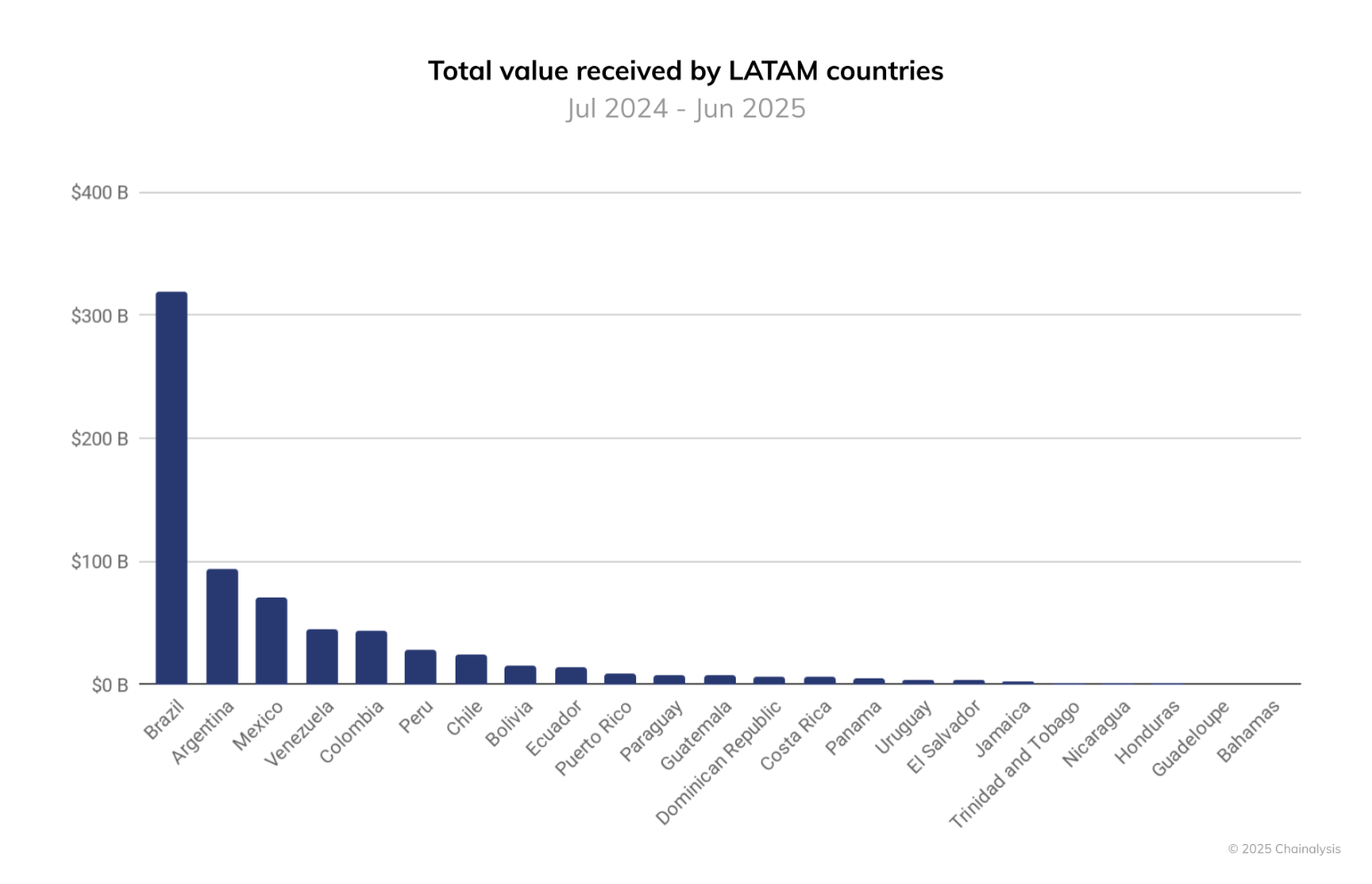 Отчет компании Chainalysis за октябрь показывает, что Бразилия составляет почти треть всей криптоактивности в Латинской Америке с объемом транзакций около $318.8 миллиарда с июля 2024 года по июнь 2025 года. Высокий уровень принятия криптовалют в стране привлек волну новых инициатив от местных и иностранных компаний.