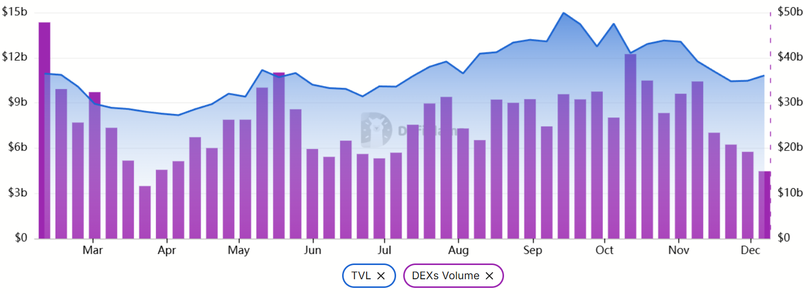 Общая заблокированная стоимость (TVL) Solana снизилась до $10,8 миллиардов с $13,3 миллиардов два месяца назад. Несколько ведущих проектов в экосистеме, таких как Kamino, Jupiter, Jito и Drift, зафиксировали падение депозитов на 20% и более. Дополнительно к этому, активность торговли на децентрализованных биржах (DEX) Solana также резко упала.