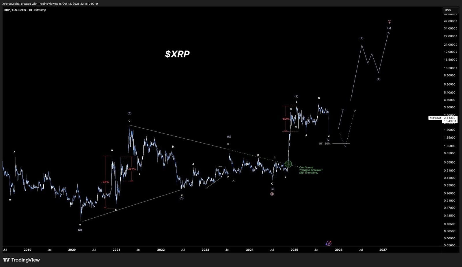 Аналитик волн Эллиотта XForceGlobal также заявил, что XRP «все еще бычий на макроуровне».