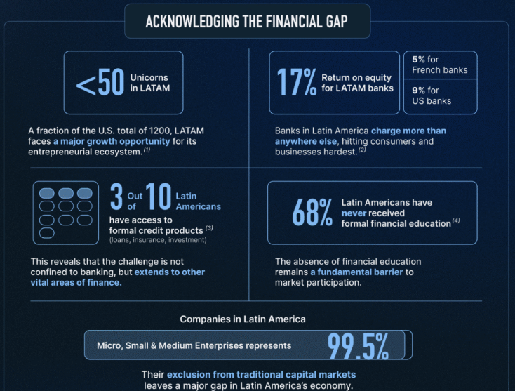 Недостаток доступа к банковским услугам также создал системные неэффективности в регионе, включая технологические барьеры и высокие стартовые затраты, которые замедляют приток инвестиций в капиталовложение в Латинской Америке.