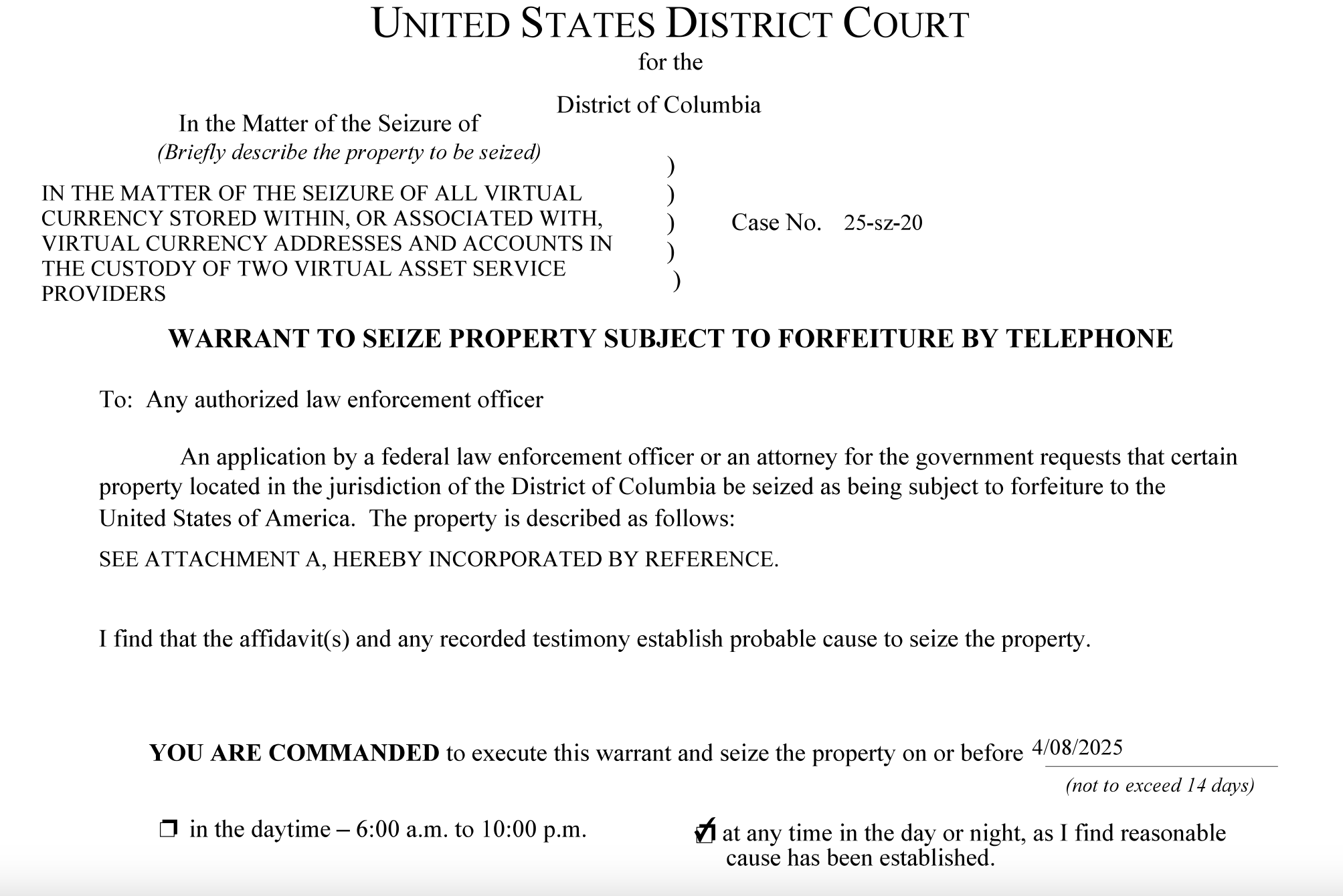 Иск на изъятие криптовалюты, связанной с ХАМАС. Источник: US DOJ