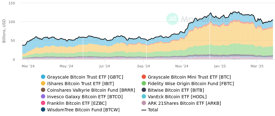 Активы Bitcoin ETF в США под управлением по продукту. Источник: MacroMicro