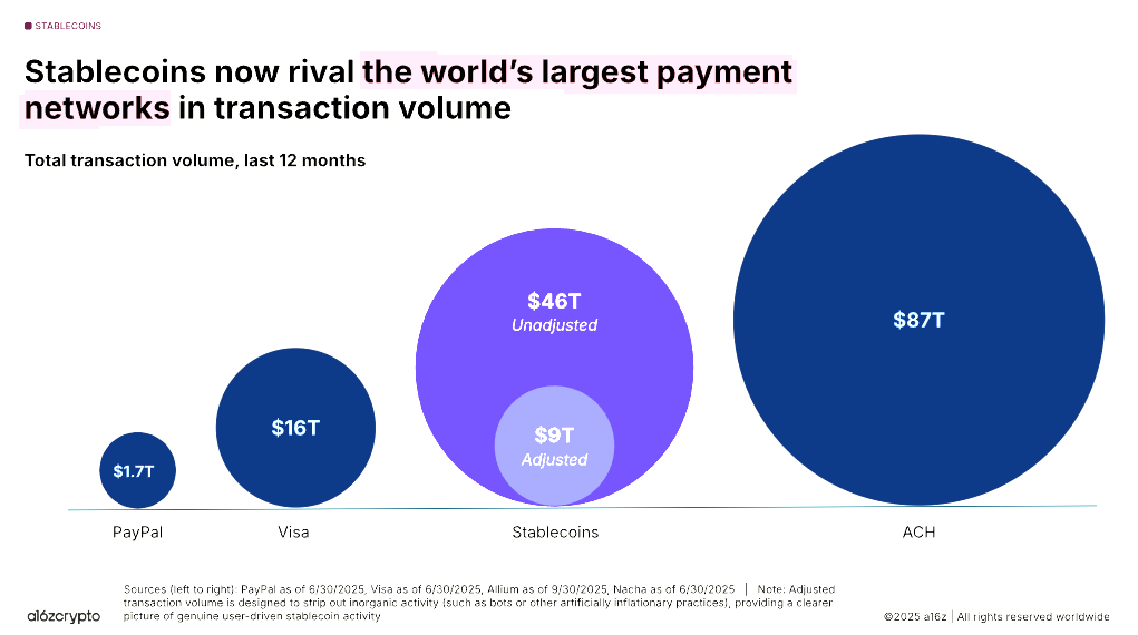 Они стали базовым слоем расчетов на глобальном крипторынке: по данным отчета a16z «State of Crypto 2025», ежемесячные обороты превышают $700 млрд. Деньги в цифровом виде начали перемещаться со скоростью интернета.