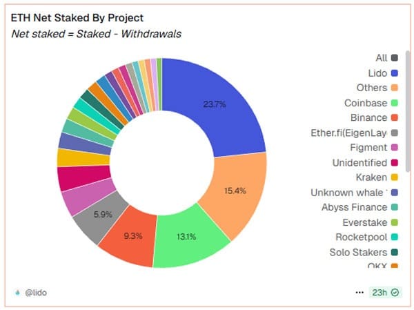 Lido является крупнейшей платформой ликвидного стейкинга с почти 8,5 миллионами ETH на сумму около 33 миллиардов долларов в стейкинге. В настоящее время предлагается 3,3% доходности от размещенных ETH.
