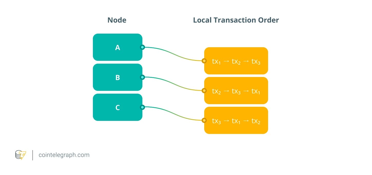Однако это изначально подвержено манипуляции. Один злонамеренный узел может намеренно исказить свои локальные отметки времени и изменить окончательный порядок двух транзакций, даже если все честные участники получили их в правильном порядке.