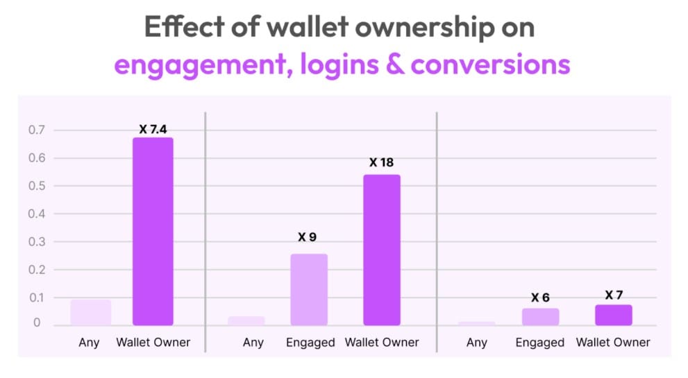 “Наш анализ показывает поразительный инсайт: пользователи с установленными криптокошельками в 18 раз чаще регистрируются и в 7 раз чаще переходят к криптопродуктам.”
