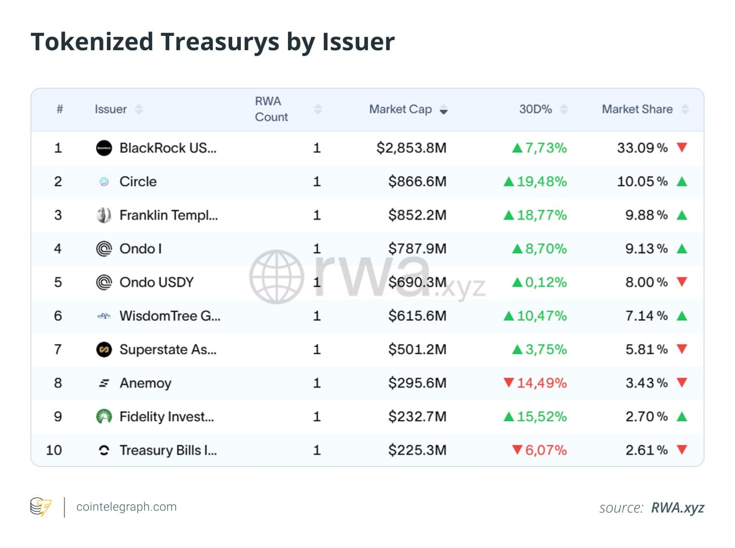 Объем токенизированных казначейских облигаций превысил $8.6 млрд благодаря банкам и биржам