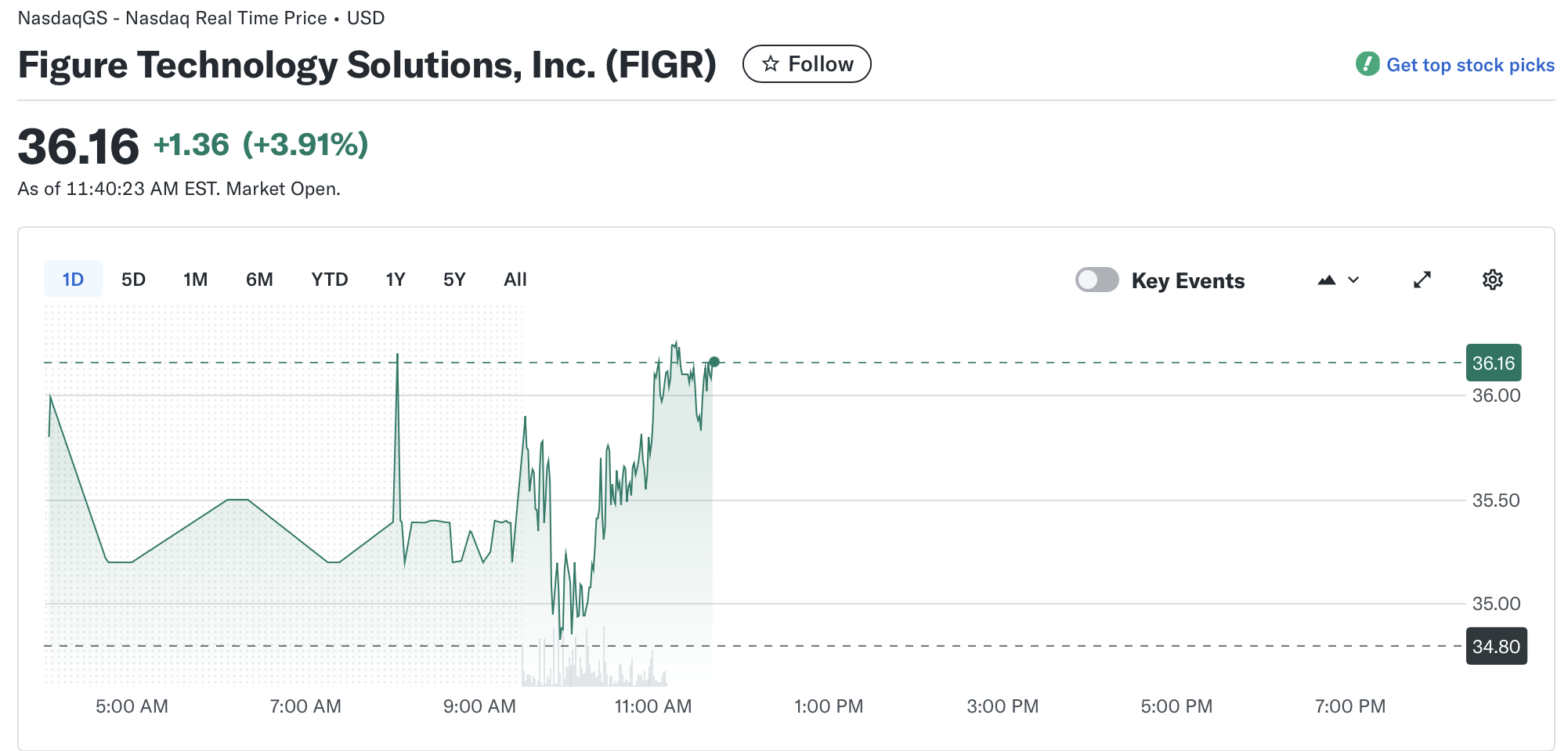 В понедельник цена акций Figure выросла почти на 4% в начале торгов, согласно данным Yahoo Finance.