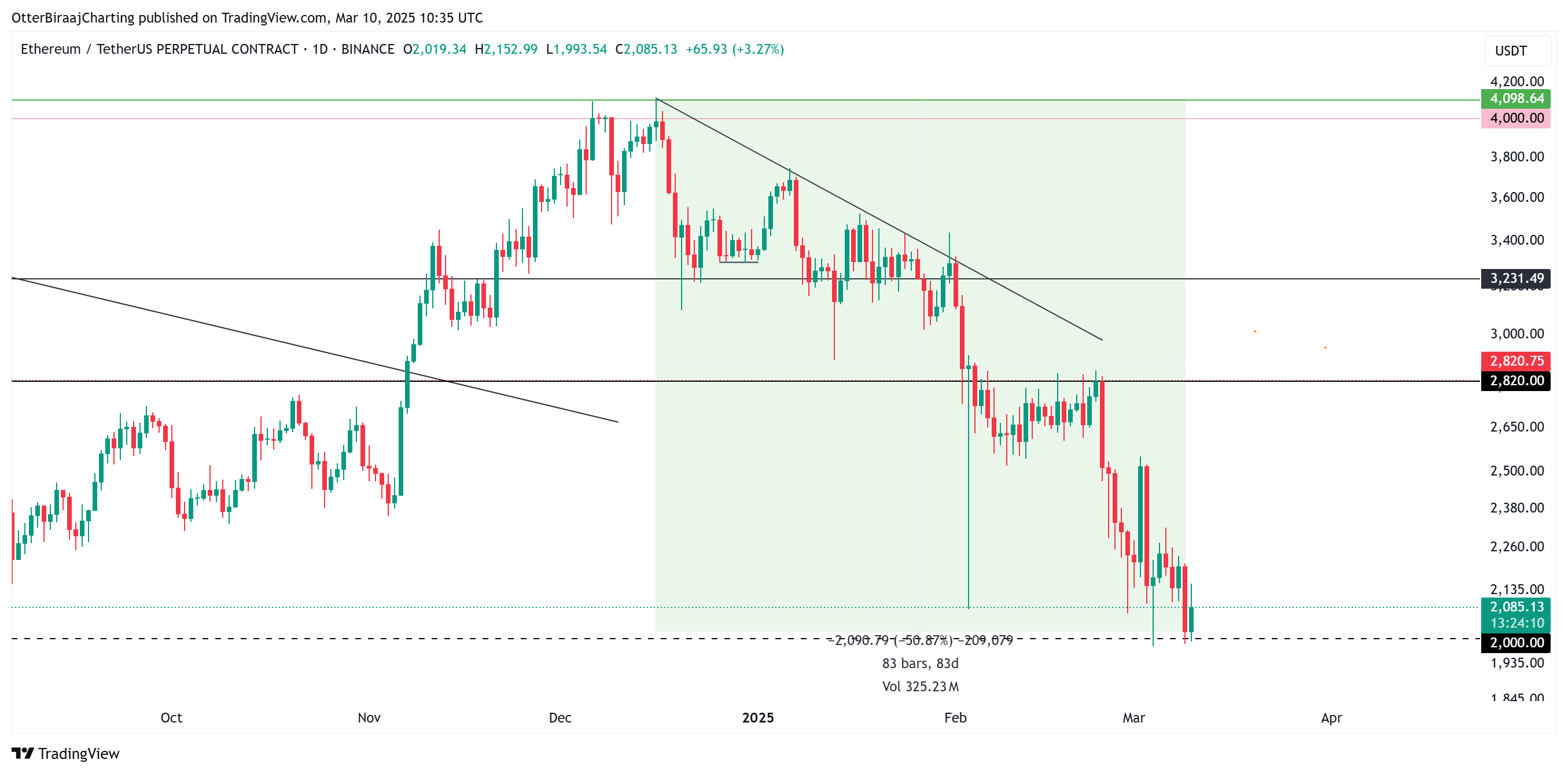 Цена на Ether в настоящее время консолидируется вблизи психологического уровня $2000 после стабильной коррекции с начала 2025 года.