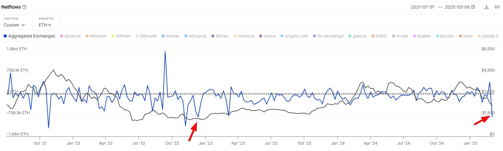 Чистый поток Ethereum на агрегированных биржах. Источник: X.com