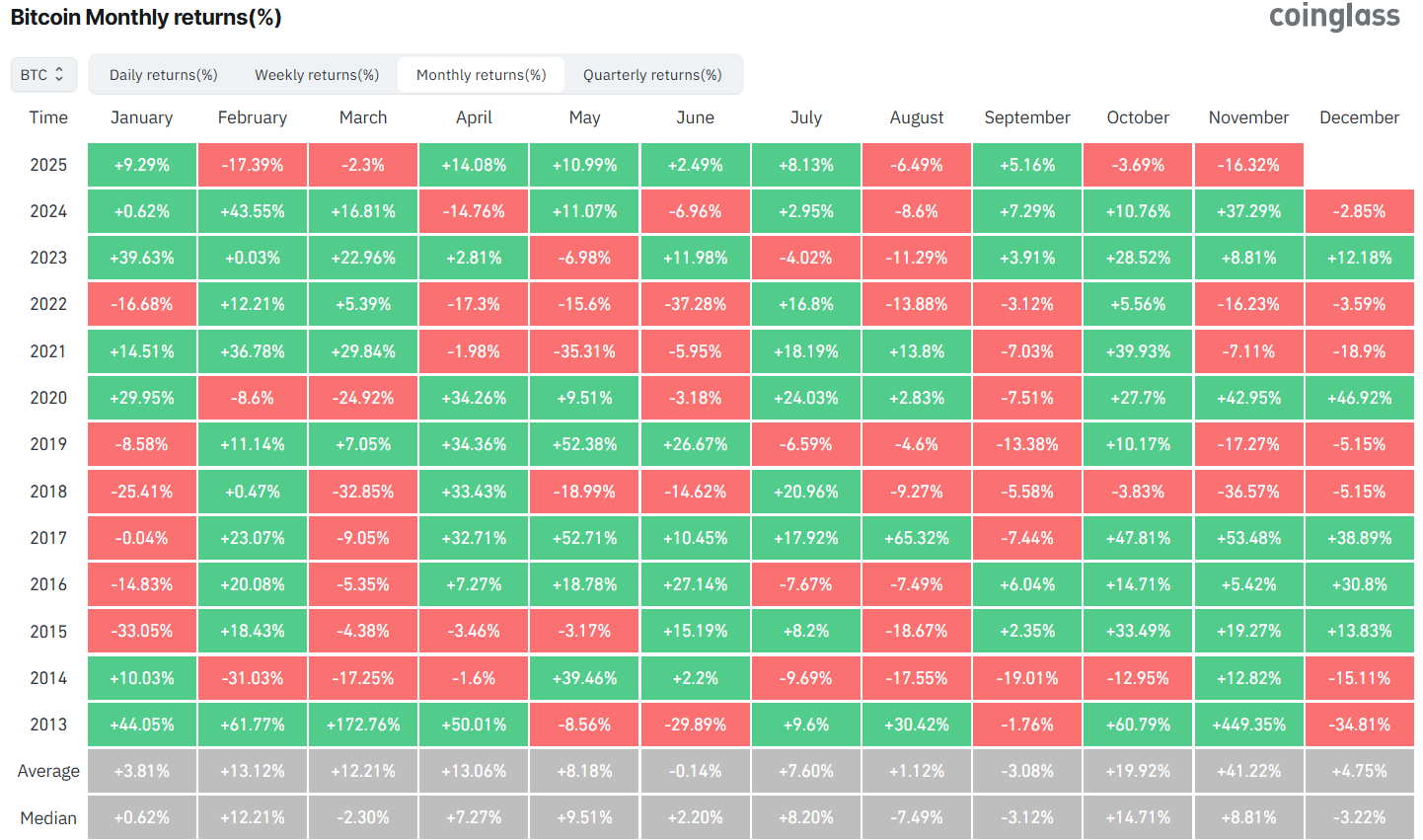 Несмотря на ожидания роста Bitcoin среди инвесторов, отток из ETF продолжает расти. Ноябрь традиционно является лучшим месяцем для исторической доходности Bitcoin, с среднемесячным ростом BTC на 41.22%, согласно данным CoinGlass.
