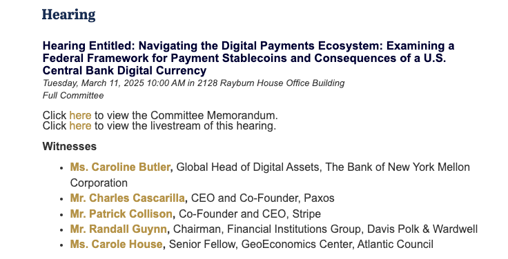 Американские законодатели готовятся к бурным обсуждениям регулирования стейблкоинов, при этом ведущие представители отрасли планируют изложить своё видение будущего в данном вопросе.